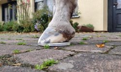 Dieses Shire Horse Fohlen kam mit einer Fehlstellung zur Welt. Aufgrund seines Alters von 5 Tagen beim ersten Termin kam natürlich kein Eisen in Frage, dass aufgenagelt werden muss. Daher verwenden wir in diesem Fall GluShu und kleben ihn mit einer Platte auf den Fohlenhuf. Dieses Vorgehen hat sehr gut…